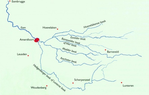 De Barneveldse Beek en de Lunterse Beek (of Heiligenbergerbeek genoemd bij Amersfoort) vormen samen in Amersfoort de Eem.